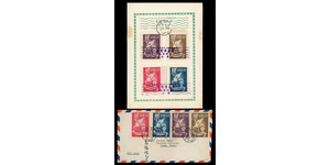#1037-1040, Used on presentation card and on cover to Lima, Peru, card with couple hinge remnants, Fine to Very Fine. ...