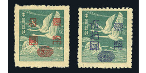 Lot 122/27 :: China, 1949 10c on $20, 50c on $4 Imperf Between