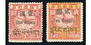 Lot 122/34 :: China: Offices in Tibet, 1911, Surcharges on Coiling Dragons, 3p-2r Complete