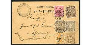 Multi-franking six nation P.O. stamps and canceled Tientsin, Shanhaikwan German Office cds, Fine overall. ...