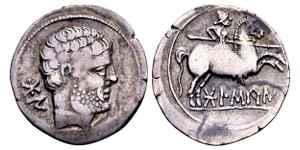 Ca. 150-100 BC. AR denarius, 3.83 g. SNG Spehr 695. Nearly very fine. ...
