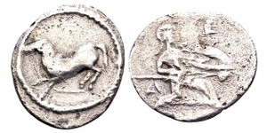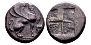Ca. 350-3540 BC. AR hemiobol, 0.36 g. HGC 901. Good fine. ...