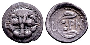 Ca. 410-390 BC. AR hemiobol, 0.3 g. SNG von Aulock 7336. Rough surfaces. R. Very fine. ...