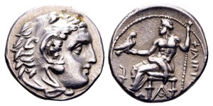 Sardis, 322-318 BC. AR drachm, 4.22 g. Young herakles in lion's skin right. / AΛEΞANΔΡOΥ Zeus Aetophoros enthroned left; ...