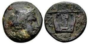 297-272 BC. Æ19, 4.35 g. Laureate head of Zeus right; below: monogram / A Π thunderbolt within oak wreath. SNG Copenhage ...