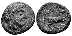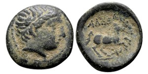 Ca. 234-168 BC. Æ13, 2.75 g. Head of Dodonian Zeus right / AΠEI PΩTAN thunderbolt. Cf SNG Copenhagen 128 (diff. denomina ...