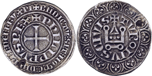Philippe III le Hardi. 1270-1285, Gros tournois o.J. PhILIPPVS . REX + Kreuz in doppeltem Schriftkreis. Rs: TVRONVS. CIV ...