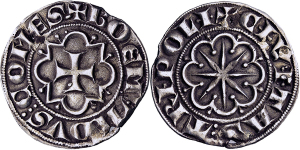 Boémond VII. 1275-1287, Gros o.J. Kreuz in Zwölfpass. Rs: Torburg in Zwölfpass (2; 1 Ex. mit winzigen Randausbrüchen; ss ...