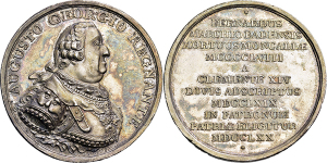 August Georg. 1761-1771, Medaille 1770 (Stempel von Johann Jakob Hauter) auf die Wahl des seligen Markgrafen Bernhard II ...