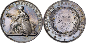 Karl Leopold Friedrich. 1830-1852, Schulprämie o.J. für die obere Vorschule und die Sexta (Doell) mit Gravur "W. / Maur ...
