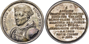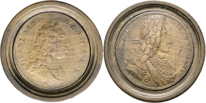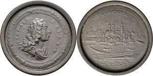 Maximilian II. Emanuel, 1.Regierung. 1679-1705, Zinnmedaille o.J. (1683; Stempel von Philipp Heinrich Müller) auf die Be ...