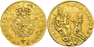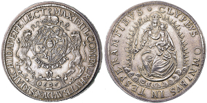 Maximilian I. 1623-1651, München.Dukat 1646 (unsigniert). MAX . CO . P . R . V . BA . D . S - . - R . I . ARCHID . ET . ...