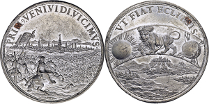 Medaille 1730 (Stempel von Christian Ernst Müller; Mmz. Johann Christian Holeisen) auf die 2. Säkularfeier der Augsburge ...