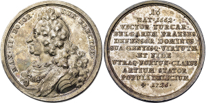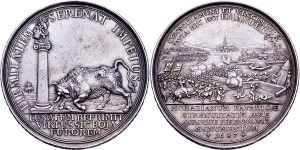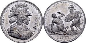 Maximilian II. Emanuel, 1.Regierung. 1679-1705, Medaille 1687 (unsigniert) auf den Sieg des Kurfürsten bei {\i Mohacz} a ...