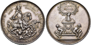 Maximilian II. Emanuel, 1.Regierung. 1679-1705, Dame-Brettstein 1697 (Nürnberg um 1700; Vs. signiert von Martin Brunner; ...