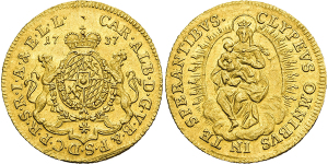 Karl Albert als Kurfürst. 1726-1742, München.Dukat 1737 (unsigniert; Stempel von Franz Andreas Schega). CAR . ALB . D . ...
