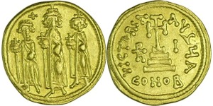A/ Héraclius au centre, Héraclius Constantin à droite et Herclonas à gauche.