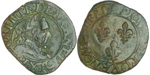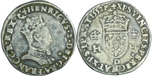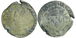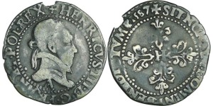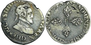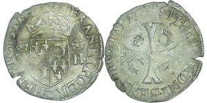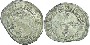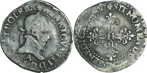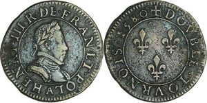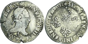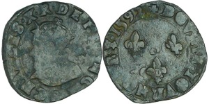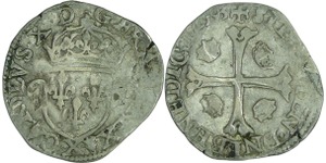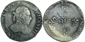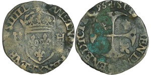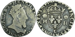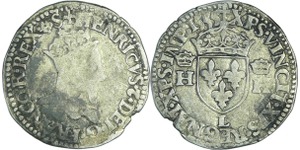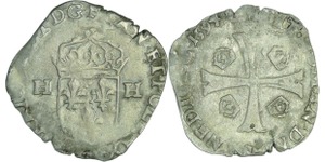 A/. HENRICVS. III. D. G. FRAN. ET. POL. REX. Ecu de France-Dauphiné couronné et accosté de deux H couronnés.