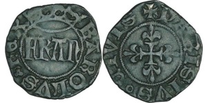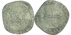 A/ + HENRICVS. IIII. D. G. FRAN. ET. NAVA. REX Croix formée de quatre bâtons couronnés.