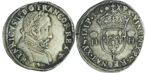A/. HENRICVS. III. D. G. FRAN. ET. POL. REX. Buste au col fraisé, lauré et cuirassé à droite. Lettre d'atelier sous le b ...