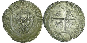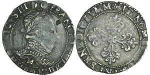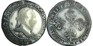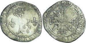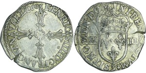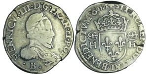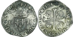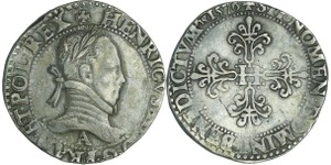 A/ + [HE]NRICVS. III. D. G. FRAN. [ET. P]OL. REX Buste lauré et cuirassé à droite, au col plat. Lettre d'atelier sous le ...