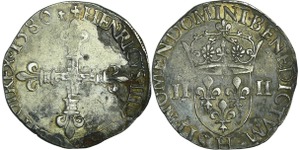 A/ + HENRICVS. III. D. G FRANC. ET. POL. REX 1580. Croix fleurdelisée.