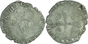 Lot 039/474 ROYAL FRENCH COINS - Hugues Capet to Henri IV :: France - Henri IV (1589-1610) - Quart d'écu à la croix feuillue - 1605 9 (Rennes)