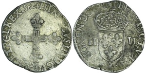 Lot 039/459 ROYAL FRENCH COINS - Hugues Capet to Henri IV :: France - Henri III (1574-1589) - Huitième d'écu - 1588 T (Nantes)