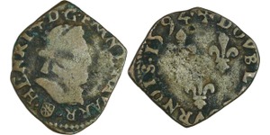 Lot 039/481 ROYAL FRENCH COINS - Hugues Capet to Henri IV :: France - Henri IV (1589-1610) - Double tournois de Navarre - 1594 (Saint-Palais)