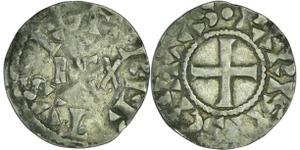 A/ + KAROLVS REX légende extérieure : + BNDICTV: SIT: nOmE: DnI: nRI: DEI. Croix.