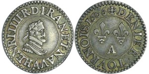 Lot 039/480 ROYAL FRENCH COINS - Hugues Capet to Henri IV :: Henri IV - Denier tournois - 1606 A (Paris) - Essai en argent