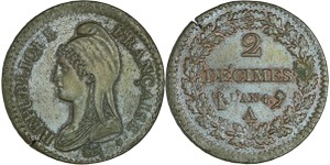 Lot 039/677 MODERN FRENCH COINS - Révolution to Napoléon 1er :: France - Directoire (1795-1799) - 2 décimes Dupré - An 4 A (Paris)