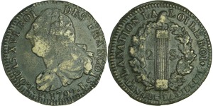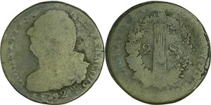 Lot 039/670 MODERN FRENCH COINS - Révolution to Napoléon 1er :: France - Constitution (1791-1792) - 2 sols au faisceau type FRANCOIS - 1792 W• (Arras)
