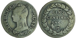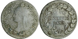 Lot 039/678 MODERN FRENCH COINS - Révolution to Napoléon 1er :: France - Directoire (1795-1799) - 5 centimes Dupré - surfrappe - AN 5 R (Orléans)