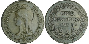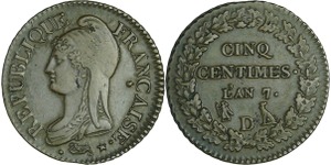 Lot 039/681 MODERN FRENCH COINS - Révolution to Napoléon 1er :: France - Directoire (1795-1799) - 5 centimes Dupré - grand module - An 7/5 D (Lyon avec lévrier décalé