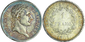 Lot 039/695 MODERN FRENCH COINS - Révolution to Napoléon 1er :: France - Napoléon 1er (1804-1814) - 1 franc revers république 1808 T (Nantes)