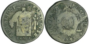 Lot 039/676 MODERN FRENCH COINS - Révolution to Napoléon 1er :: France - Convention (1792-1795) - 1/2 sol à la balance - An II - 1793 H (La Rochelle)