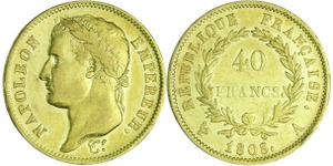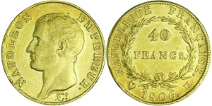 Lot 039/687 MODERN FRENCH COINS - Révolution to Napoléon 1er :: France - Napoléon 1er (1804-1814) - 40 francs calendrier grégorien 1806 I (Limoges)