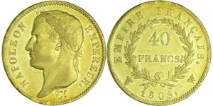 Lot 039/696 MODERN FRENCH COINS - Révolution to Napoléon 1er :: France - Napoléon 1er (1804-1814) - 40 francs revers empire 1809 W (Lille)