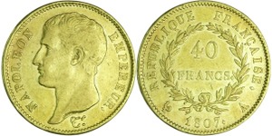 Lot 039/693 MODERN FRENCH COINS - Révolution to Napoléon 1er :: France - Napoléon 1er (1804-1814) - 40 francs revers république 1807 A (Paris)