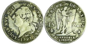 Lot 039/668 MODERN FRENCH COINS - Révolution to Napoléon 1er :: France - Constitution (1791-1792) - 15 sols type FRANCOIS 1791 A (Paris)