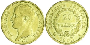 Lot 039/691 MODERN FRENCH COINS - Révolution to Napoléon 1er :: France - Napoléon 1er (1804-1814) - 20 francs revers république 1807 A (Paris)