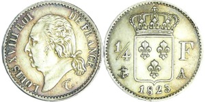 Lot 039/723 MODERN FRENCH COINS - Louis XVIII to Louis-Philippe :: France - Louis XVIII (1815-1824) - 1/4 de franc buste nu 1823 A (Paris)