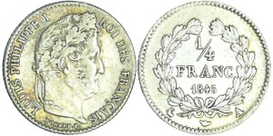 Lot 039/739 MODERN FRENCH COINS - Louis XVIII to Louis-Philippe :: France - Louis-Philippe Ier (1830-1848) - 1/4 de franc 1845 A (Paris)