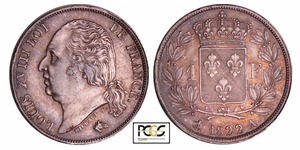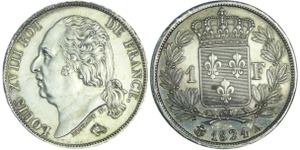 Lot 039/722 MODERN FRENCH COINS - Louis XVIII to Louis-Philippe :: France - Louis XVIII (1815-1824) - 1 franc au buste nu 1824 A (Paris)