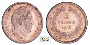 Lot 039/736 MODERN FRENCH COINS - Louis XVIII to Louis-Philippe :: France - Louis-Philippe Ier (1830-1848) - 2 francs 1833 A (Paris)