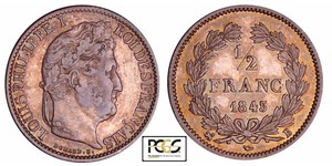 Lot 039/738 MODERN FRENCH COINS - Louis XVIII to Louis-Philippe :: France - Louis-Philippe Ier (1830-1848) - 1/2 franc 1843 B (Rouen)