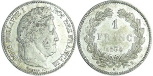 Lot 039/737 MODERN FRENCH COINS - Louis XVIII to Louis-Philippe :: France - Louis-Philippe Ier (1830-1848) - 1 franc tête laurée 1834 K (Bordeaux)