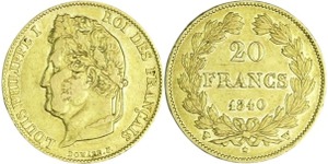 Lot 039/734 MODERN FRENCH COINS - Louis XVIII to Louis-Philippe :: France - Louis-Philippe Ier (1830-1848) - 20 francs tête laurée 1840 W (Lille)