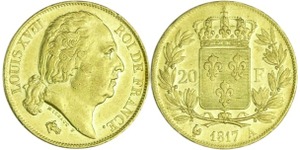 Lot 039/715 MODERN FRENCH COINS - Louis XVIII to Louis-Philippe :: France - Louis XVIII (1815-1824) - 20 francs au buste nu 1817 A (Paris)